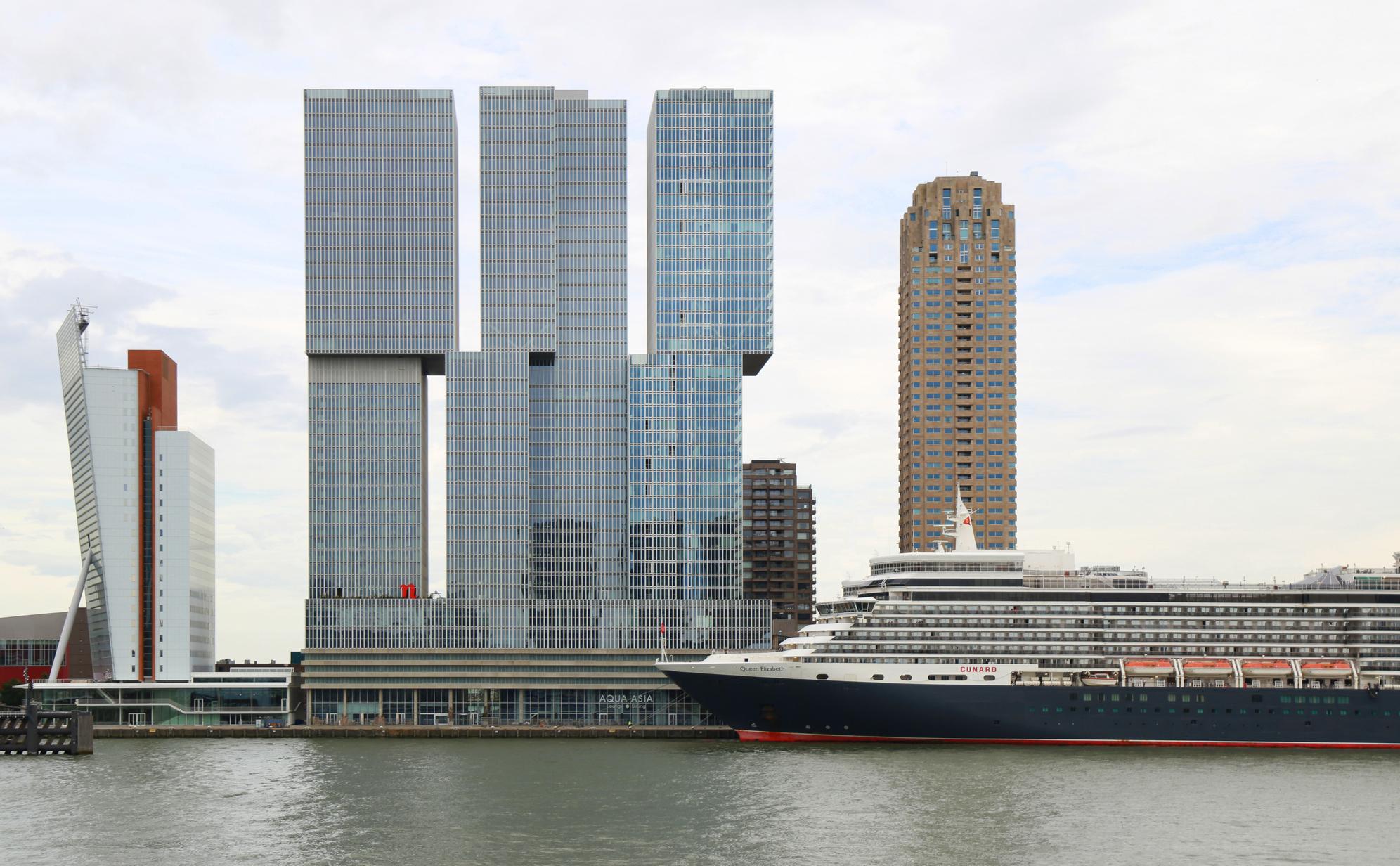 The Rotterdam is a 44-storey mixed-use development built in 2013 on the banks of the River Meuse. It includes residential apartments, a hotel and office space. With a limited site, the developers could only build in one direction - upwards. The finished building is a work of art by OMA, a design firm with offices in Rotterdam, New York, Beijing and Hong Kong, and the architect Rem Koolhaas himself. The complex consists of three interconnected skyscrapers with a total width of 100 metres and a maximum height of 150 metres, called the West, Middle and East Towers. Each has an offset in the central sector in relation to its longitudinal axis.