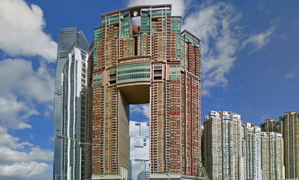 The towers are connected to each other at fairly high levels, giving the complex the shape of a giant arch. The most modern construction and energy-saving technologies have been used in the construction of the 230 metre high buildings. There are more than 1,000 apartments in the skyscrapers, an ornamental garden on the roof together with a social club. There is also a swimming pool, shopping centre, cinema and underground parking on the lower floors of the complex. The Arch is a luxury property by Hong Kong standards, with stunning views of the famous Victoria Harbour.