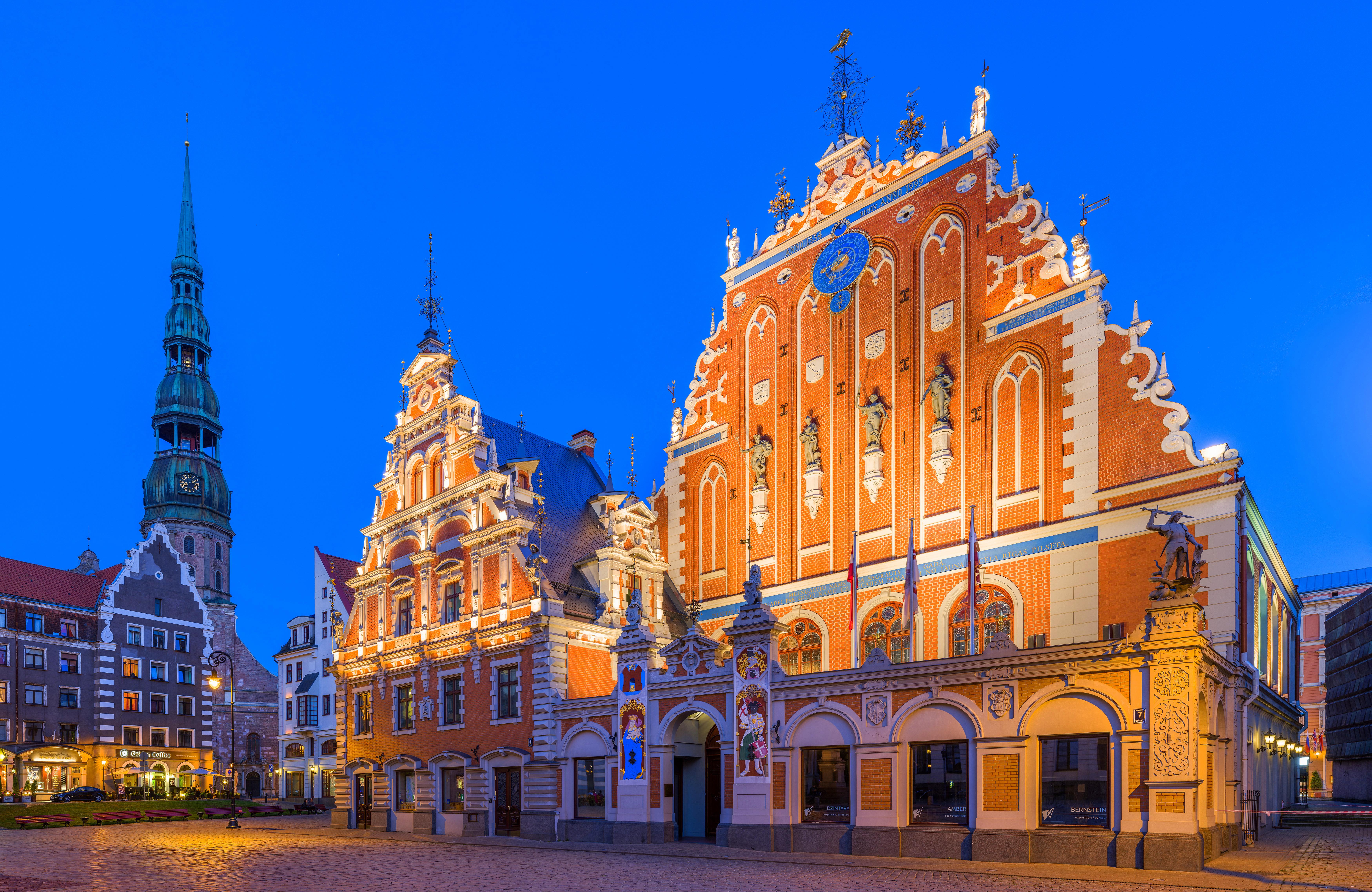 One of the city's main sights, first mentioned in 1334. The building was built as a warehouse for the needs of merchants arriving in Riga. At the end of the 15th century, it was leased to the Brotherhood of Blackheads, after whom it was named. It consisted of young and enterprising Riga merchants who traded with foreign countries and was considered the richest and most influential trading organisation in the city. It should be noted that the members of this community used the building for parties and masquerades, musical evenings and receptions. The patron saint of the fraternity was Saint Mauritius, whose image appears on the fraternity's coat of arms. The villa was often visited by dignitaries, including Empress Catherine I, Peter the Great, Chancellor Bismarck and Queen Elizabeth II.