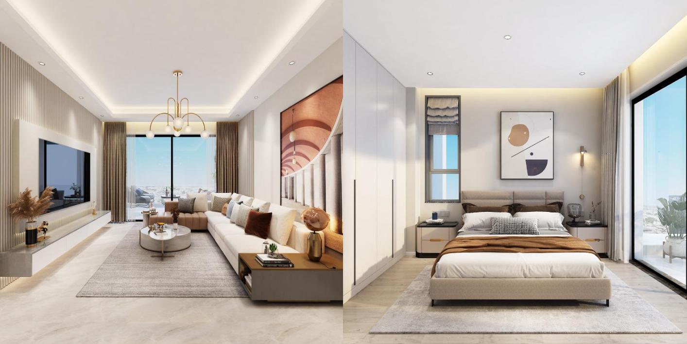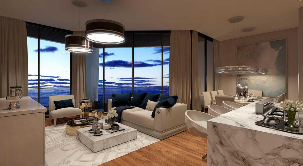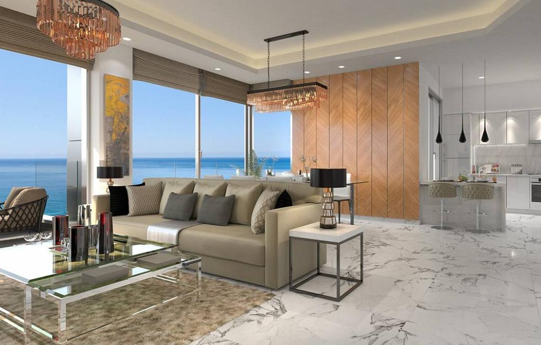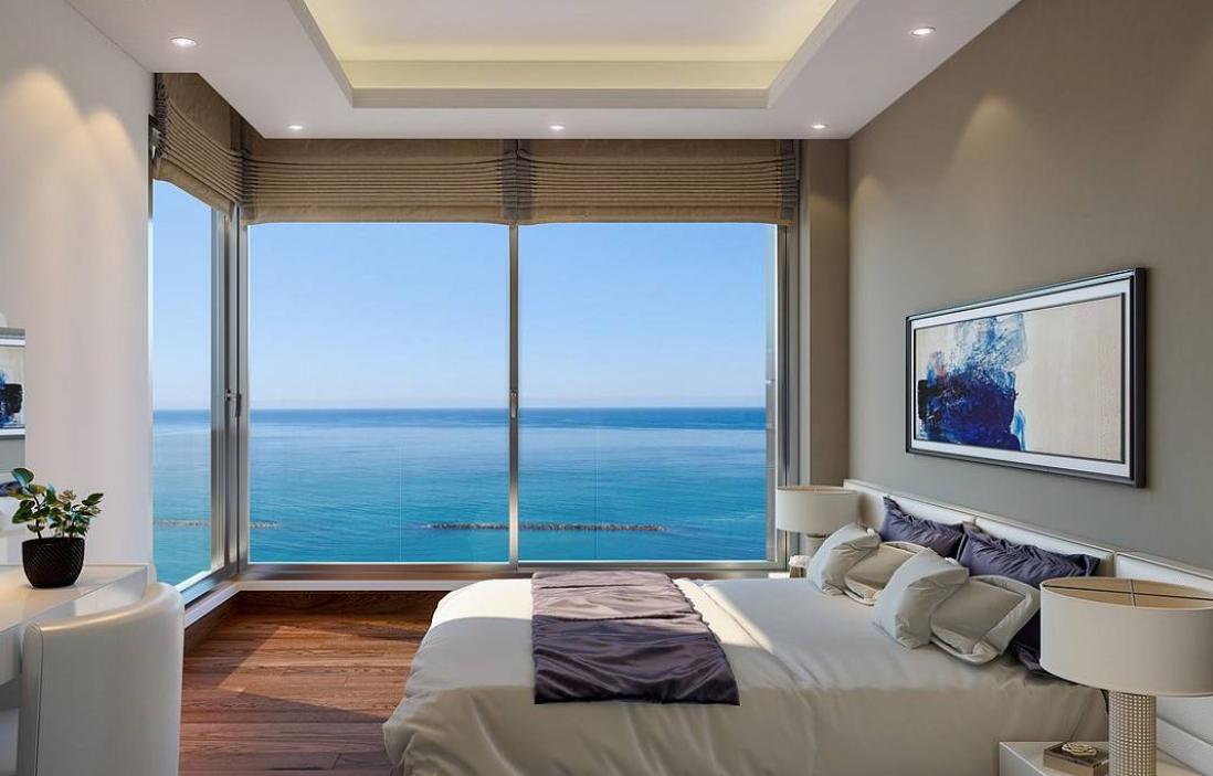 The apartments themselves occupy 112 m2 — this is an area together with a spacious terrace that overlooks the open sea. The apartment is finished with the latest high-quality materials, and high ceilings and panoramic windows make it even more spacious and comfortable.