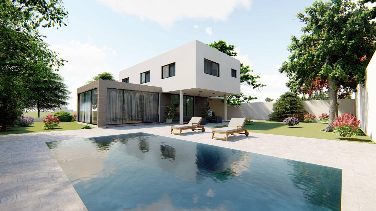 In addition to 4 bedrooms, the villa has 3 bathrooms, a spacious living room with an open-plan kitchen, a large terrace, covered parking for two cars and a large swimming pool.