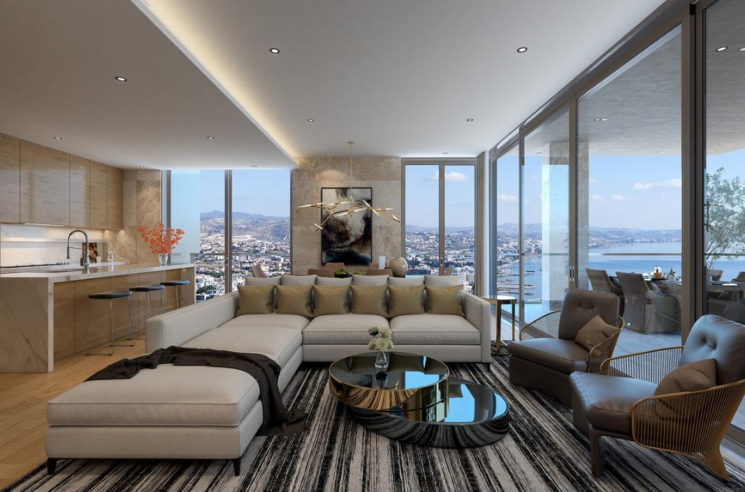 The one-bedroom apartment is located on the 4th floor of the Dream Tower, which is one of the best luxury projects in Limassol. The gated complex has all amenities, including several swimming pools, a gym and a tennis court, a kindergarten and a nursery, a playground, business and exhibition halls, recreation and walking areas with landscaping.