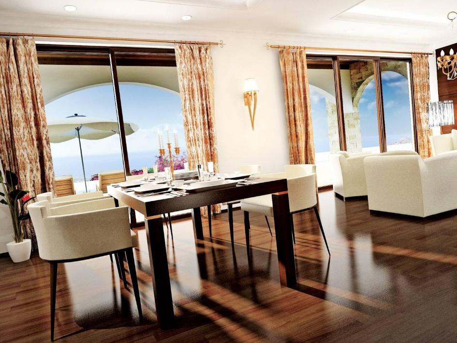 All the splendor is complemented by panoramic windows and excellent sea views — this is possible due to the location of the complex on a hill.