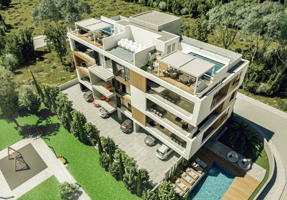 A small complex of the club house format is located in the prestigious Germasogeia Columbia district: this is a quiet, developed and fashionable area. It is just a stone's throw from the center of Limassol, you can get there in 5-10 minutes by car. The sea is also nearby, a 15-minute walk away.