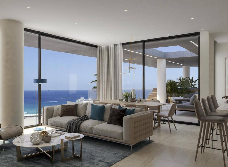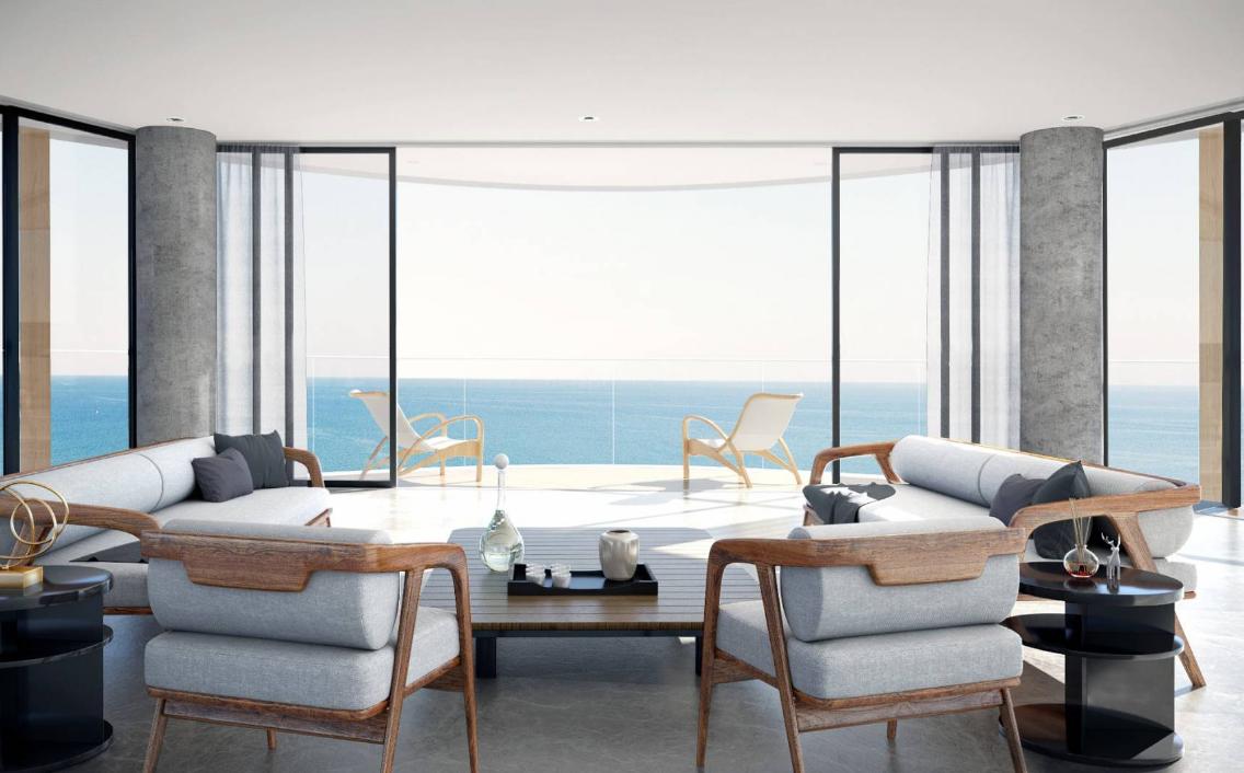 The double apartments are located on the first floor and occupy 90 m2. Panoramic sliding windows-doors lead to a spacious (about 30 m2) terrace with magnificent sea views.