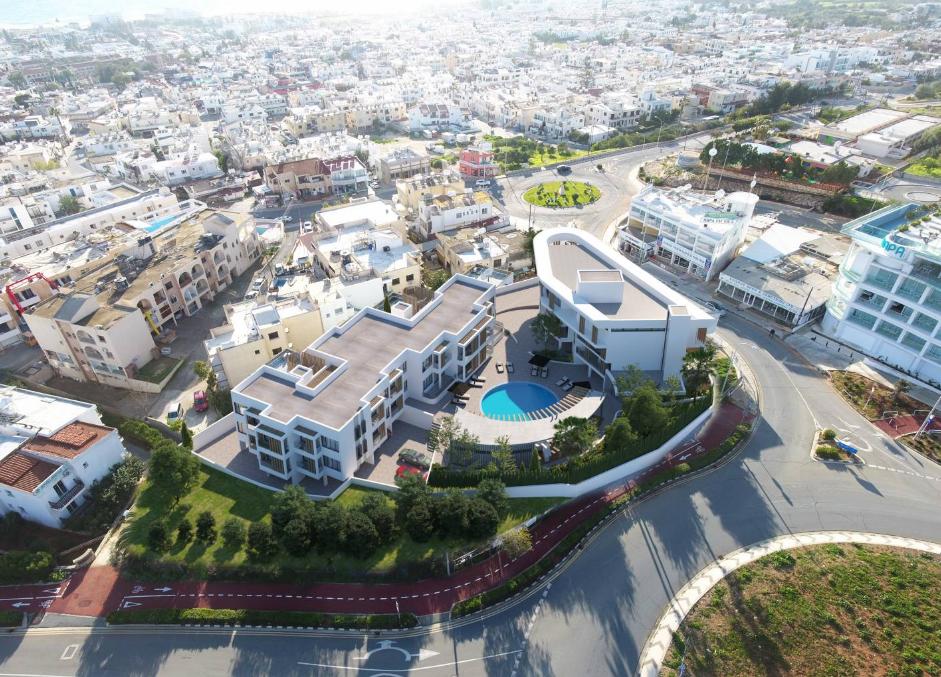 The Eden Residences is located in the center of Protaras on a small hill, so from the windows of all apartments there are magnificent views of the sea. By the way, the beach is very close, you can walk to it in 5 minutes.