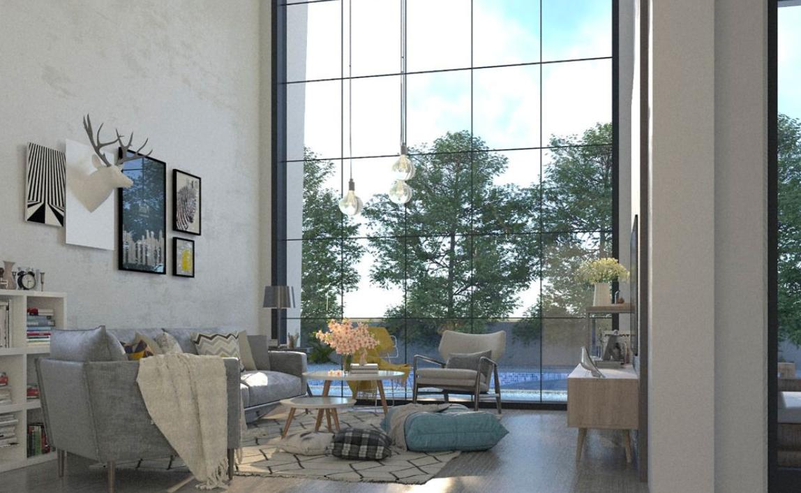 The three-bedroom villa has three bathrooms, large panoramic windows with a view and a spacious living room with a kitchen. On the roof, if desired, the owners can arrange a beautiful garden. On the territory of the house there is a swimming pool and a lawn.