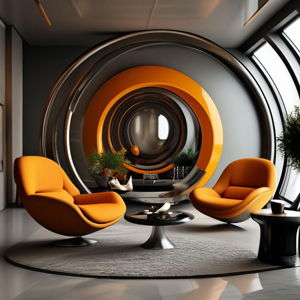 The color palette of retrofuturism often includes contrasting combinations - bright, saturated shades of orange, red, blue and green are juxtaposed with metallic and white elements. Sometimes more pastel, muted tones are used to create an atmosphere of calm and cosmic harmony. Accents in the form of decorative objects inspired by Art Deco or Pop Art play an important role: these can be lamps in the shape of atoms, mirrors with a hologram effect or furniture that resembles elements of retro computers.