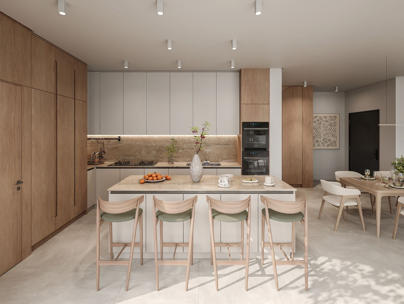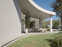 Crescent House - новый проект в районе Dromolaxia, Larnaca. Вилла с 4 спальнями и просторным участком площадью 500 м2. Минималистичный дизайн, вдохновленный природными элементами.