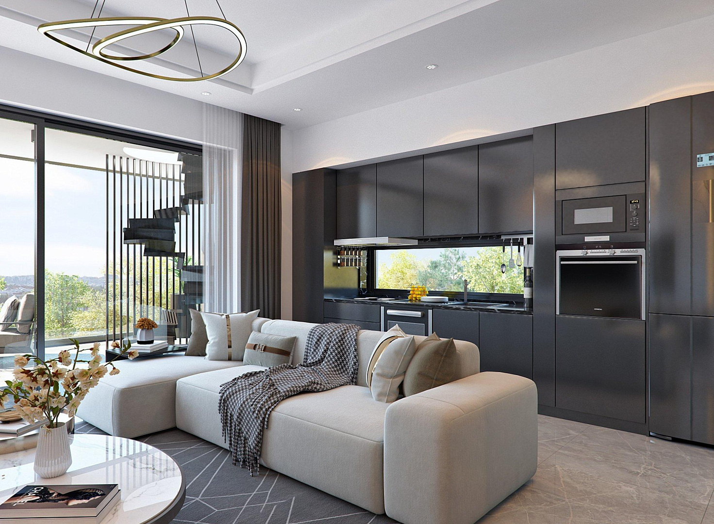 В строительстве используются качественные материалы и современные дизайнерские решения, включая стильные кухни и современную сантехнику. Квартиры оснащены системой Smart Home, позволяющей управлять освещением и другими функциями дома через телефон. В ванных комнатах предусмотрены подогрев полов и полотенцесушители, установлена современная подвесная сантехника. Также предусмотрены системы кондиционирования, качественная тепло- и шумоизоляция, а здание имеет класс энергоэффективности A.