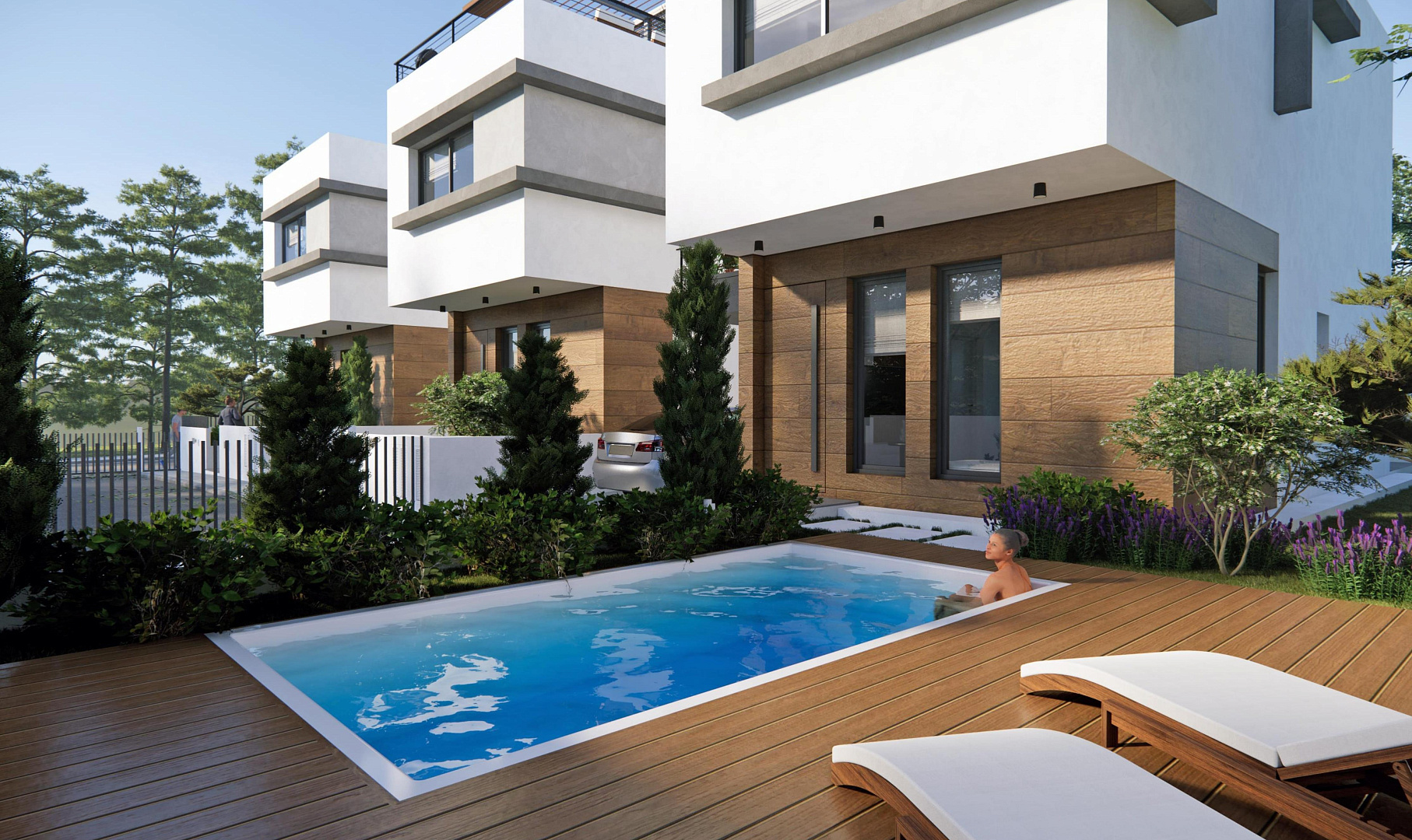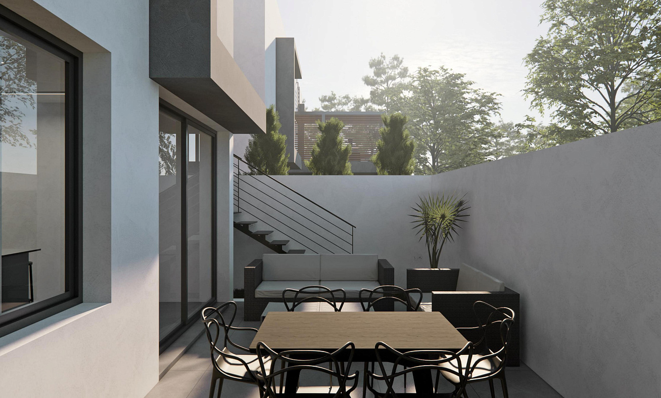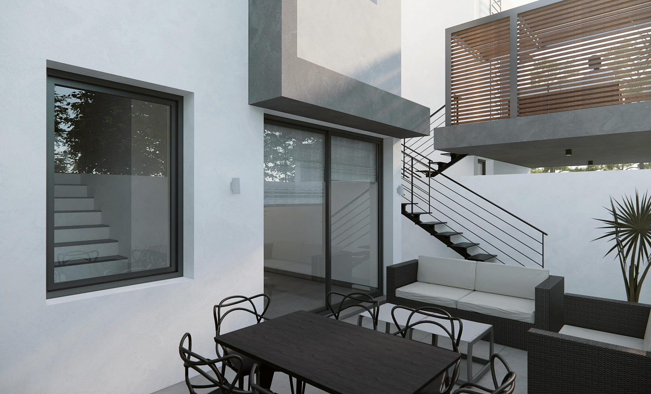 Проект в районе Oroklini,Larnaca, включает три таунхауса (с 2 и 3 спальнями). Каждый таунхаус оснащён частным садом, несколькими террасами на каждом уровне и террасой на крыше. Кроме того, каждый таунхаус имеет независимую солнечную систему для электроэнергии и горячей воды. Частный бассейн доступен за дополнительную плату. Также имеется крытая парковка и предусмотрено место для зарядного устройства для электромобилей.
