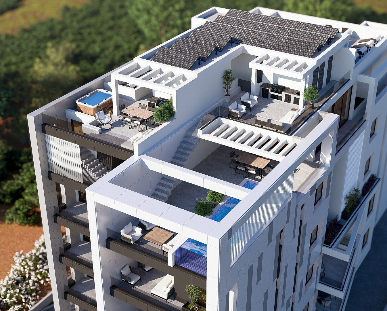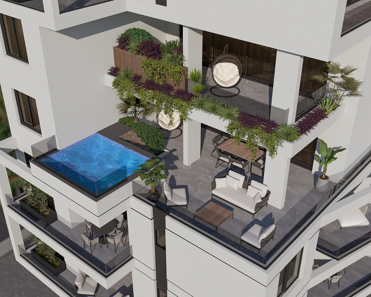 Современный пятиэтажный комплекс в районе Mackenzie, Larnaca. В комплексе всего 18 квартир с 1, 2 и 3 спальнями. Минималистичный дизайн экстерьера, ориентированный на светлые и уютные интерьеры. Класс энергоэффективности А. Прочные материалы и планировка пространства, обеспечивающая приватность. В апартаментах - большие крытые веранды и роскошная отделка. Общий бассейн и деревянная терраса для загара. От комплекса 5 минут пешком до пляжа Маккензи, 10 минут до набережной и пляжа Финикудес, 13 минут до пристани Ларнаки, 8 минут до международного аэропорта Ларнаки.