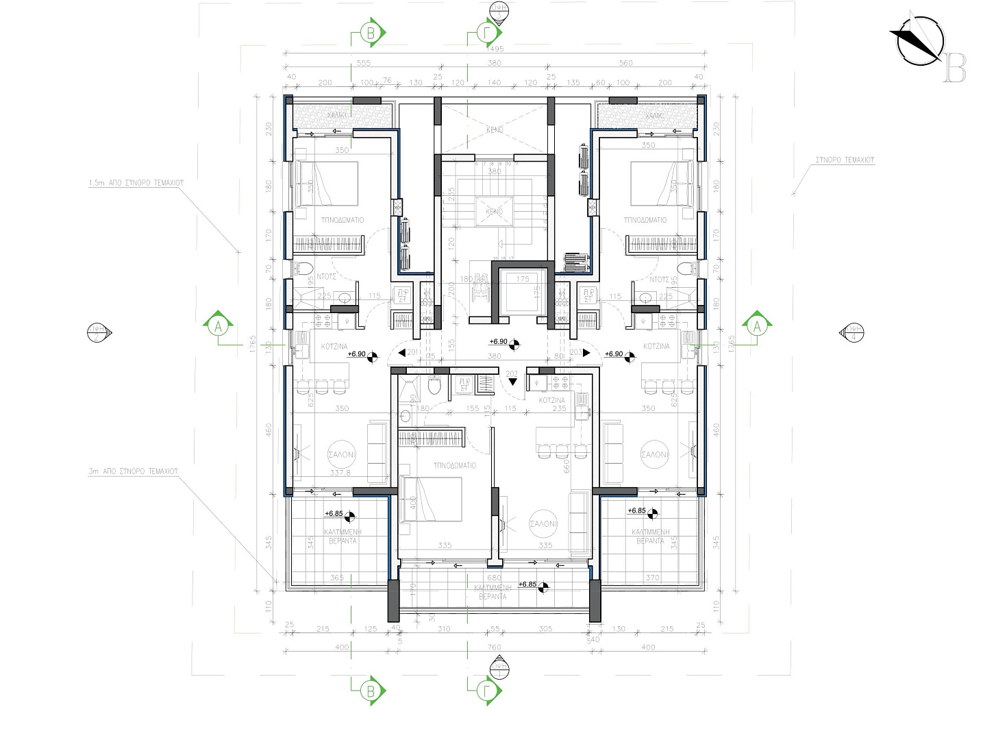 Современный комплекс в районе Engomi, Nicosia. Комплекс состоит из восьми апартаментов: шести односпальных квартир и двух двуспальных квартир. Каждая квартира сочетает в себе высококлассный дизайн, отделку и последние тенденции с использованием высококачественных теплоизоляционных материалов, отделки и сантехники.