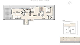 Апартаменты отличаются функциональными планировками и просторными верандами. Установлена фотоэлектрическая система. Для каждой квартиры предусмотрены удобные кладовые помещения и парковочные места. Проведена подготовка к установке сплит-систем на кухне, в гостиной и спальнях, электрических панельных обогревателей на кухне, гостиной и спальнях.