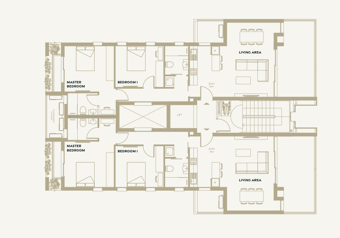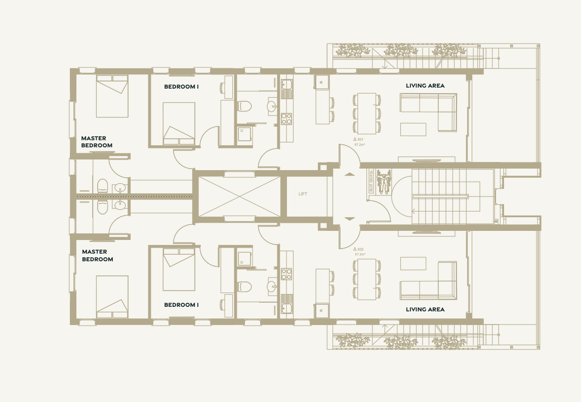 Квартиры на верхних этажах имеют панорамный вид, а четвёртый и пятый этажи возвышаются над окружающими зданиями. Из пентхауса открывается панорамный вид на городской пейзаж, открывая уникальную смотровую площадку на город. Приватность и безопасность продуманно заложены в дизайне, а для всех жильцов предусмотрена охраняемая крытая парковка.