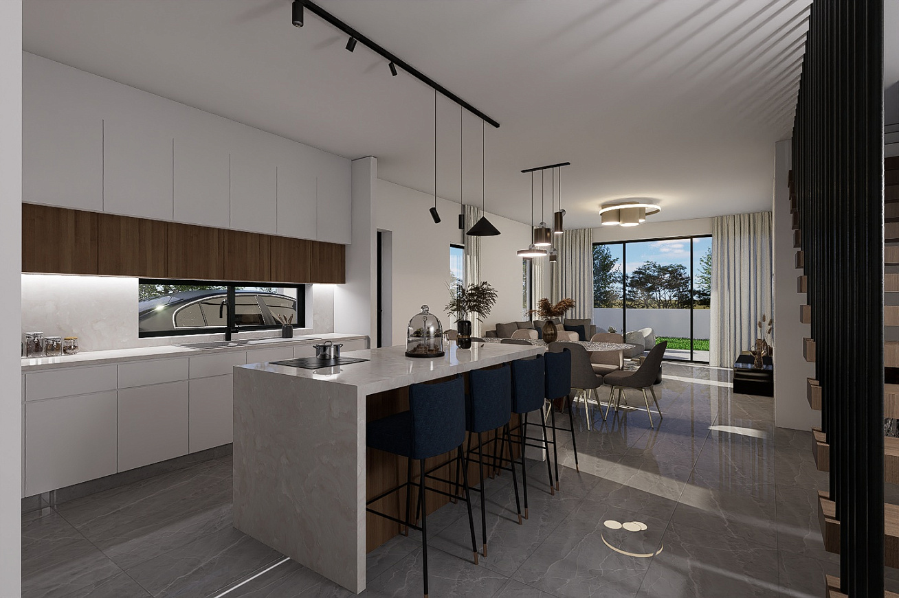 Комплекс включает современные дома, спроектированные с учётом высоких стандартов комфорта и функциональности. В каждом доме предусмотрены подготовка под системы кондиционирования, камеры видеонаблюдения и зарядку для электромобиля, а также установлена фотоэлектрическая система мощностью 3 кВт.