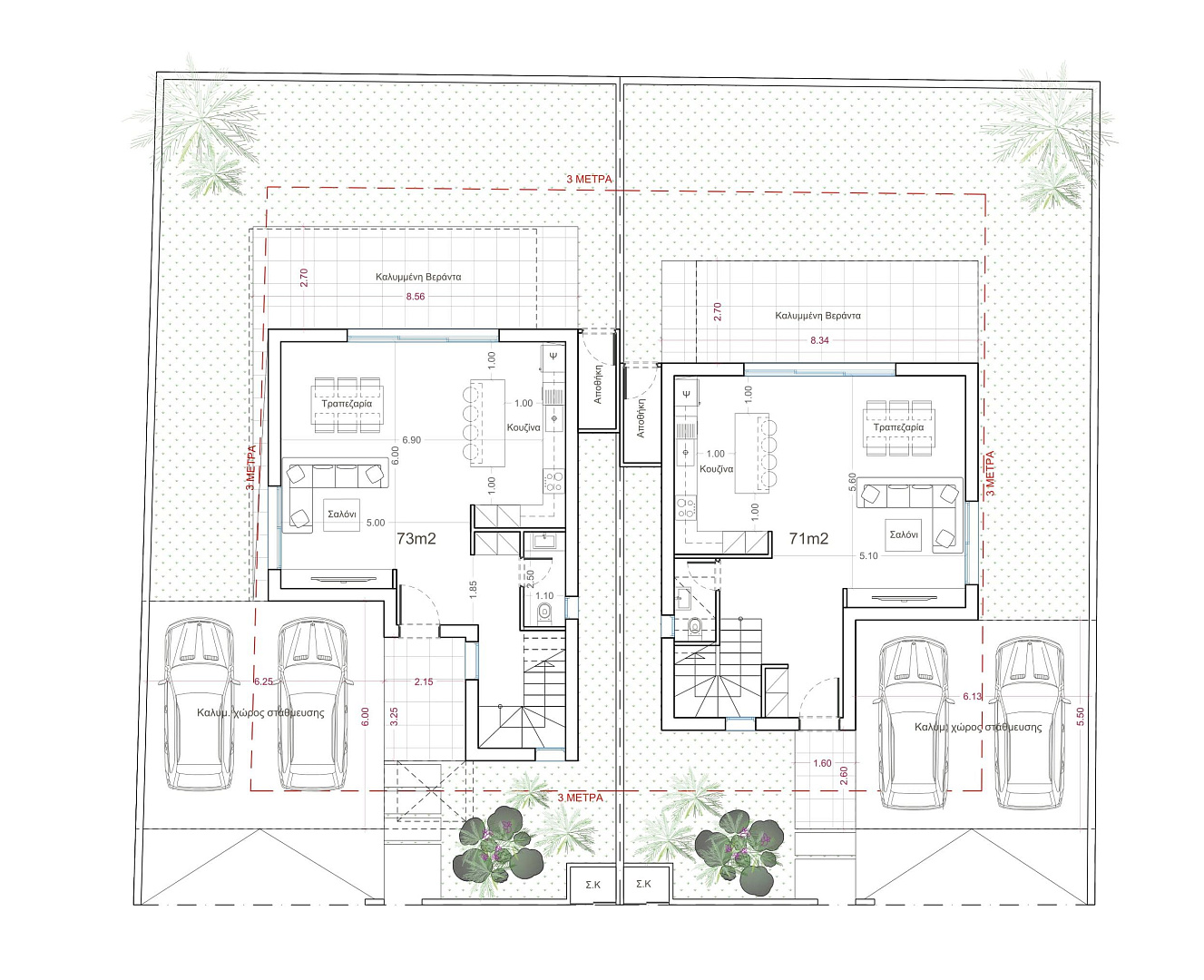 Жилой комплекс из двух современных просторных домом в районе Stelmek, Nicosia. При строительстве и отделке использовались только высококачественные материалы, что гарантирует долговечность и безупречный внешний вид.