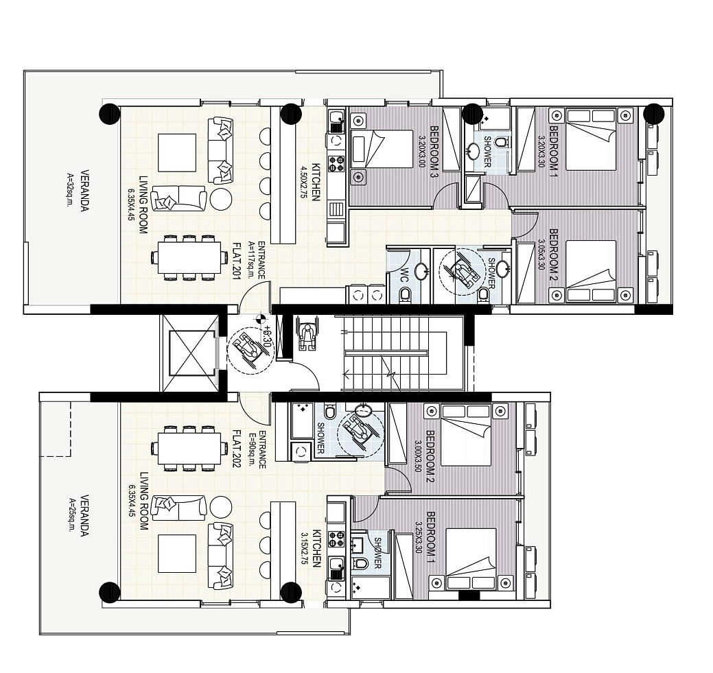 Квартиры спроектированы таким образом, чтобы обеспечить максимальный комфорт для проживания. Напольное отопление с тепловым насосом, фотоэлектрическая система (в квартирах с двумя и тремя спальнями), солнечный бойлер и система повышения давления воды создают энергоэффективную и экономичную среду. Все инженерные решения направлены на снижение расходов и повышение уровня удобства.