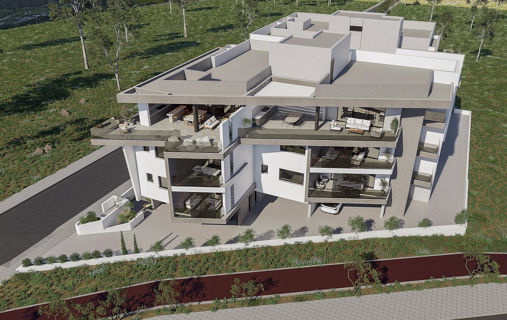 Комплекс включает современные апартаменты, построенные в соответствии с классом энергоэффективности A, что обеспечивает хорошую теплоизоляцию, комфорт в любое время года и сниженные расходы на электроэнергию. Предусмотрены зоны для установки фотоэлектрических систем и зарядки электромобилей, что отвечает современным требованиям экологичного жилья.