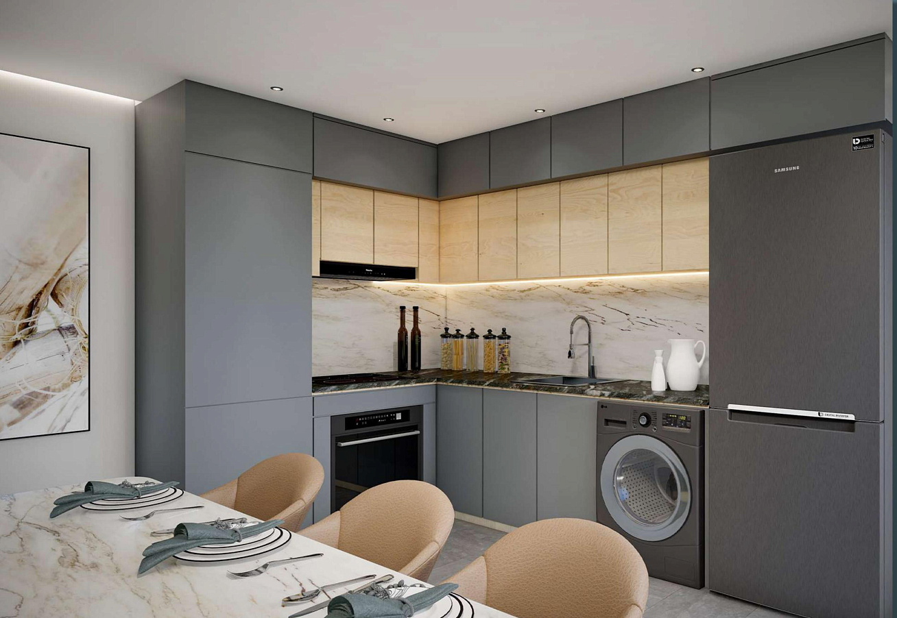 Жилой комплекс создан на основе концепции современной архитектуры, органично сочетающей эстетическую красоту с практичным дизайном. Каждая квартира спроектирована таким образом, чтобы пропускать обильный естественный свет, предлагая при этом комфорт и удобство роскошной жизни. Для каждой квартиры предусмотрена крытая парковка и кладовая.