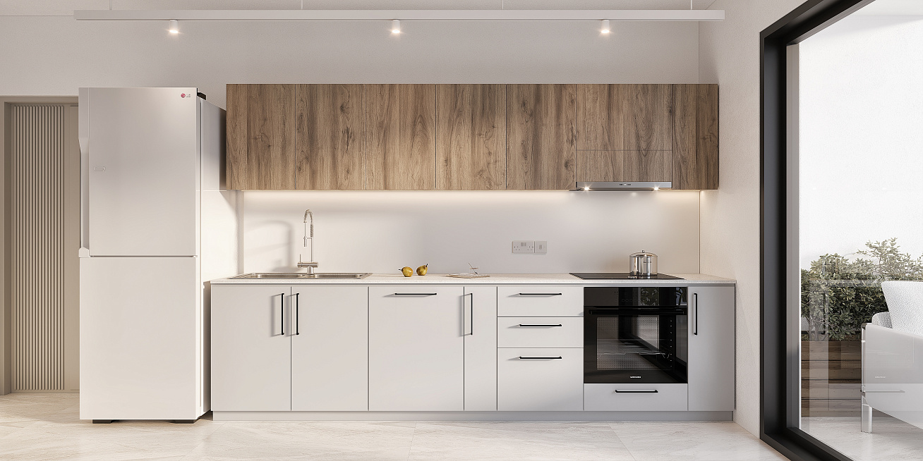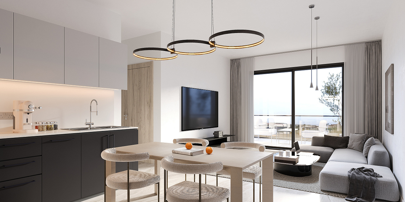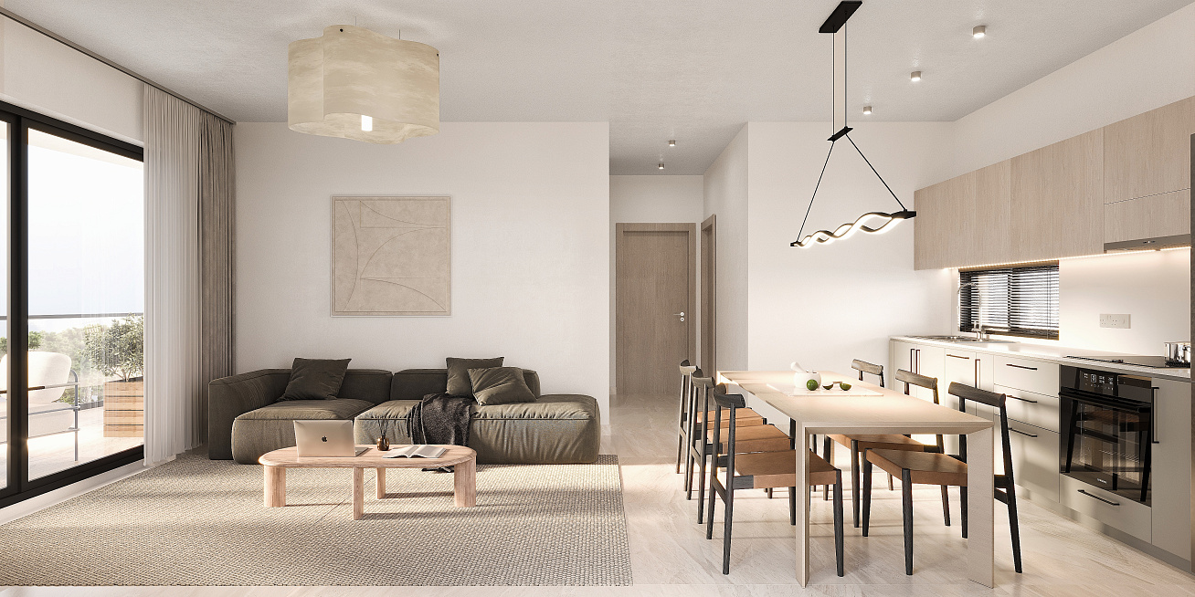Каждая квартира в комплексе спроектирована с учетом максимального комфорта. В проекте предусмотрена гостиная и кухня открытой планировки, а также крытая веранда. Кроме того, имеется парковка и индивидуальная кладовая.