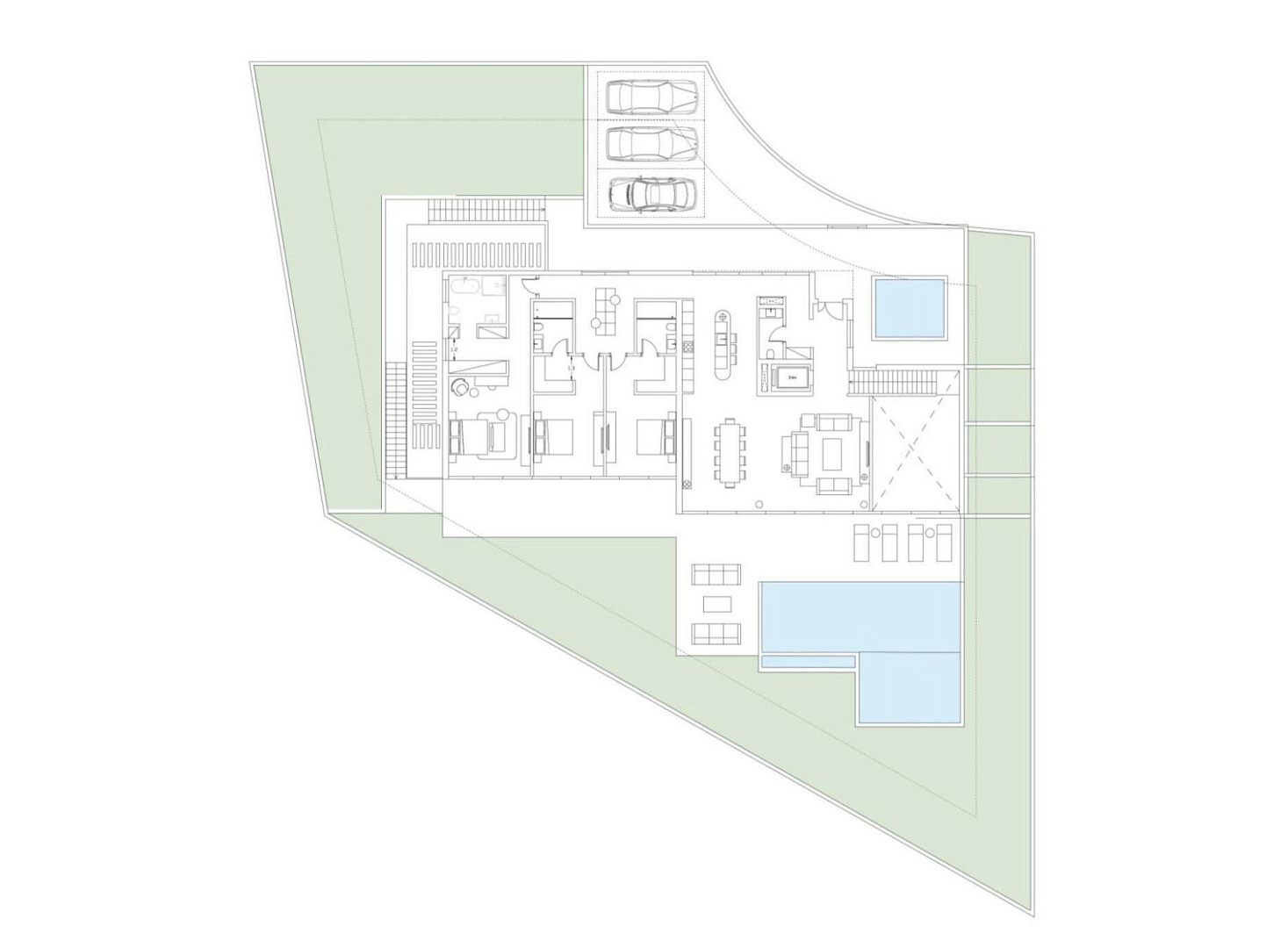 Дома отличаются просторными планировками (более 600 м²), премиальной отделкой из натуральных материалов и современными технологиями, включая подогрев пола, скрытые системы кондиционирования и систему «умный дом» KNX.