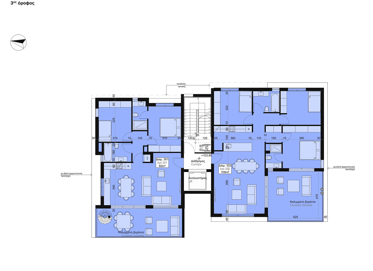 Каждая квартира в комплексе спроектирована с учетом максимального комфорта. В проекте предусмотрена гостиная и кухня открытой планировки, а также крытая веранда. Кроме того, имеется парковка и индивидуальная кладовая.