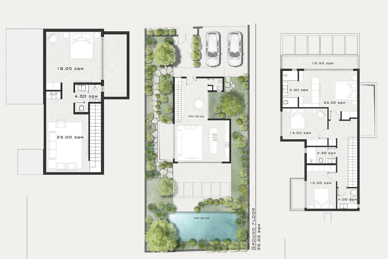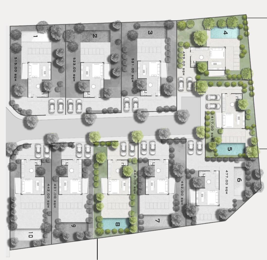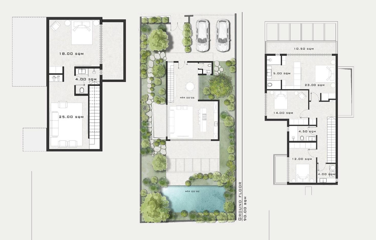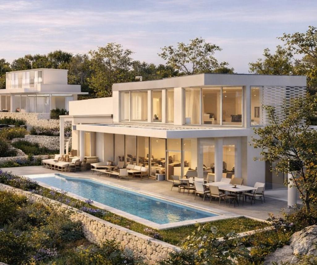 Каждая резиденция оснащена частным бассейном, просторными террасами и благоустроенным садом, создавая идеальные условия для отдыха и развлечений на свежем воздухе.