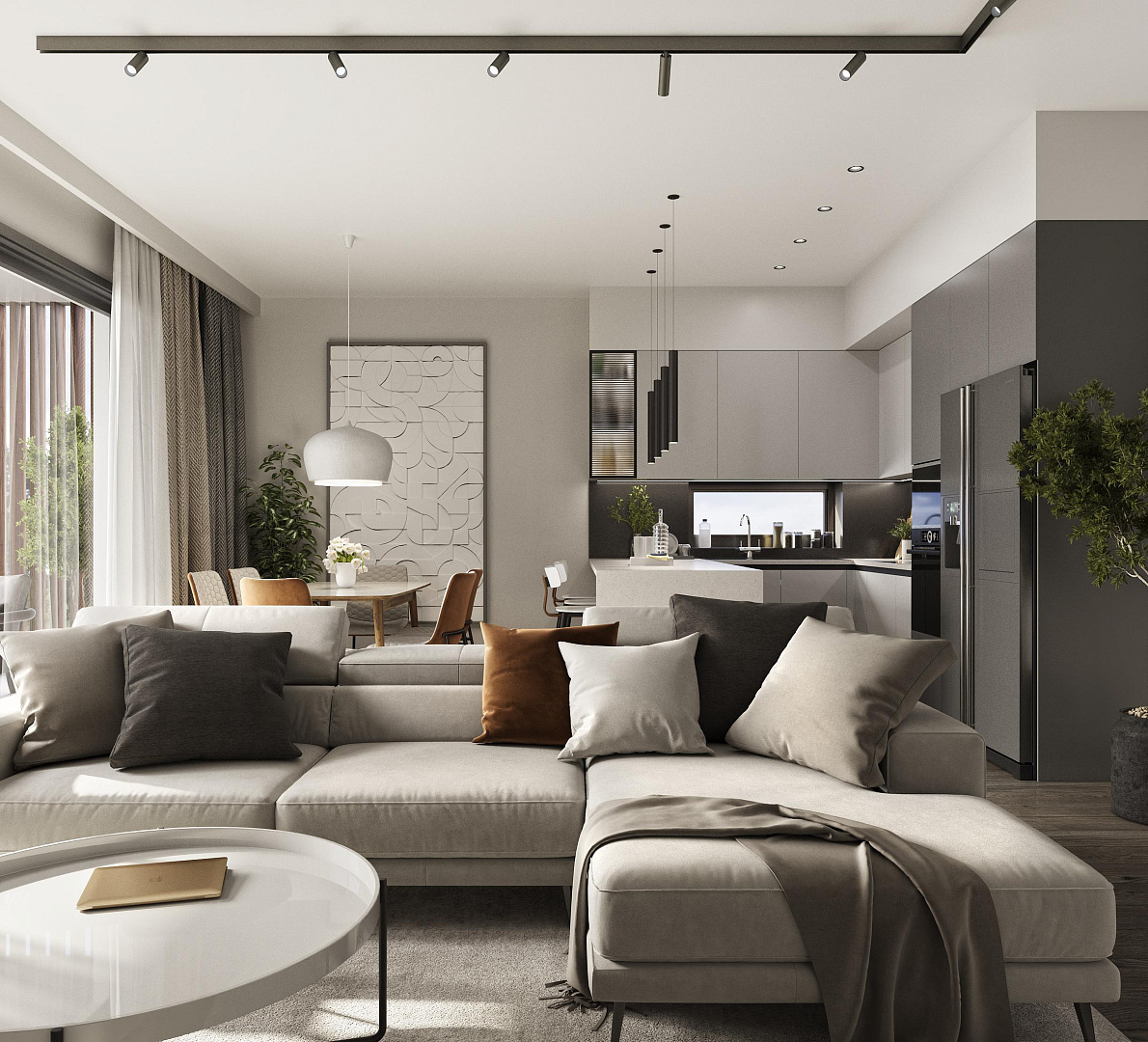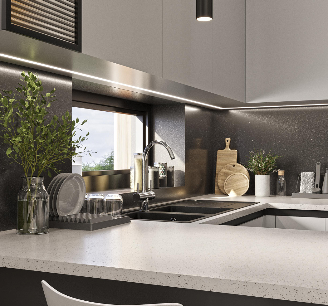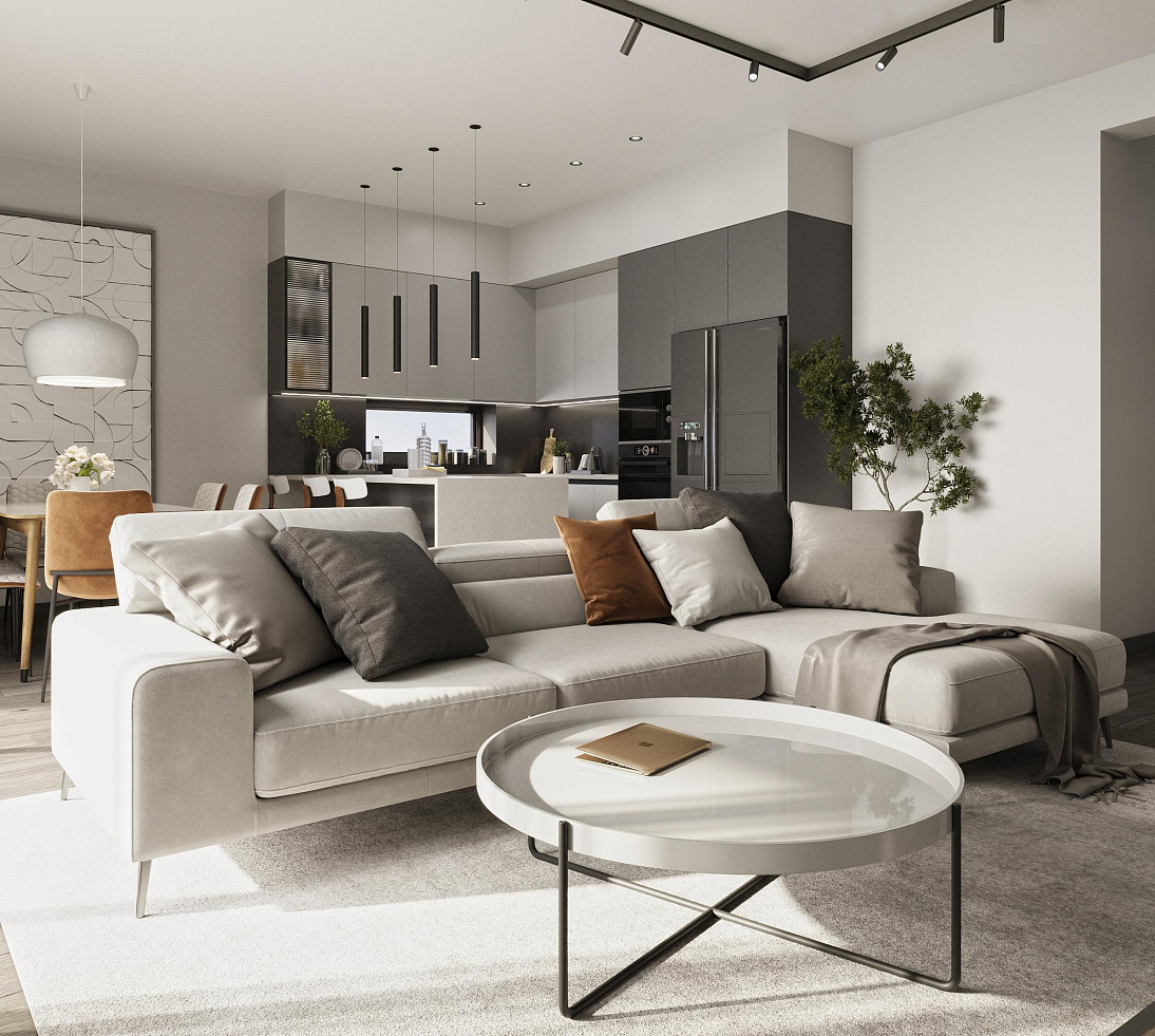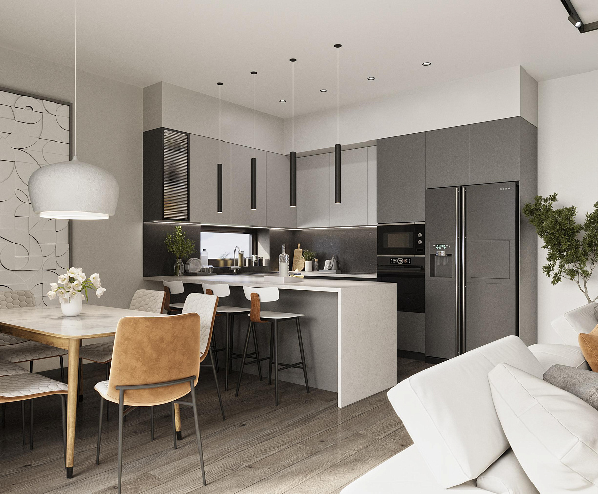Комплекс включает современные апартаменты с продуманными планировками, просторными гостиными и кухнями открытого типа, создавая светлое и функциональное пространство для жизни. В строительстве используются качественные материалы и современные технологии, обеспечивающие высокий уровень комфорта и энергоэффективности.