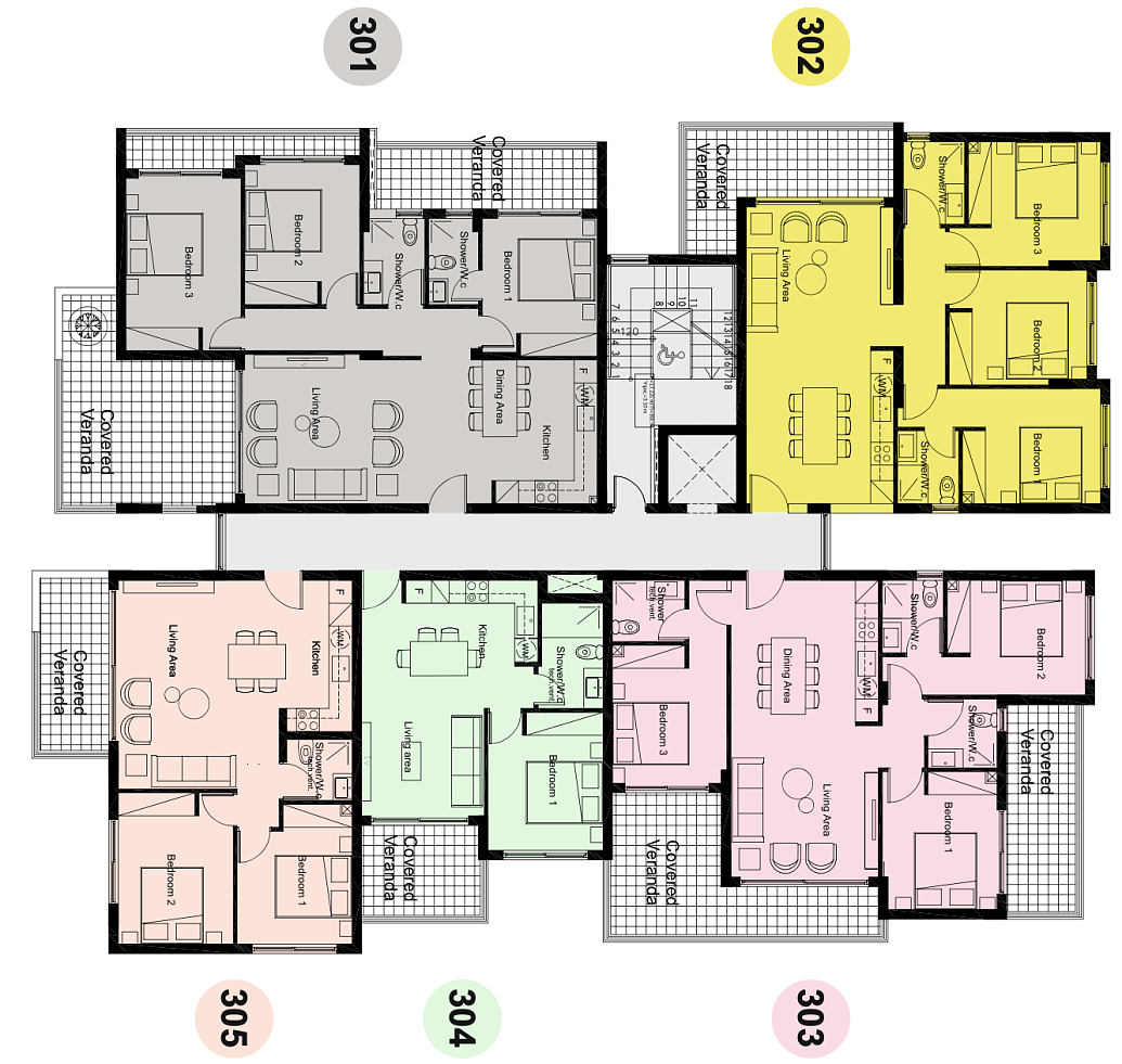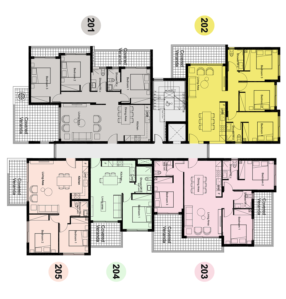 Каждая квартира имеет крытую веранду, где можно наслаждаться приятными видами и отдыхать на свежем воздухе, а крытая парковка обеспечивает удобство и безопасность.