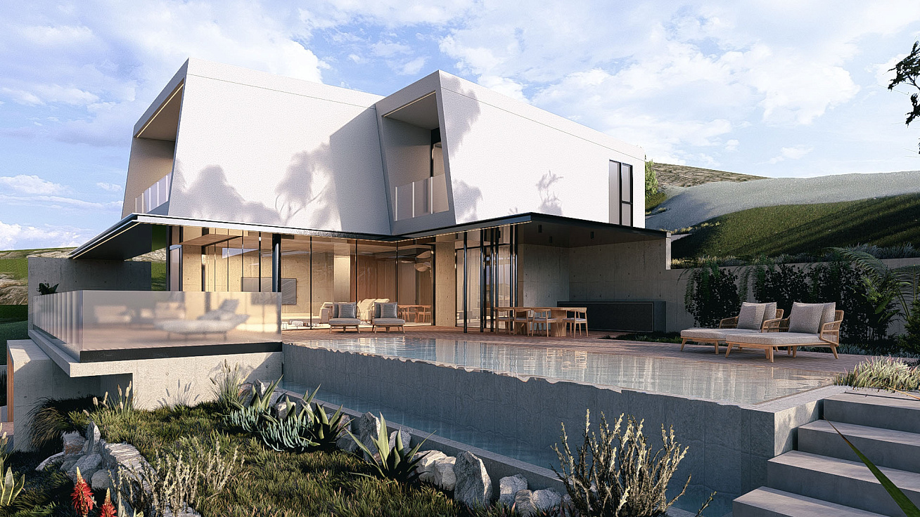Новая вилла в районе Konia, Paphos. Проект сочетает современную архитектуру, панорамное остекление и натуральные материалы. В доме 5 спален, 6 ванных комнат, кухня открытой планировки и гостиная, прямой доступ к частному бассейну, терраса. На участке есть гараж на 2 автомобиля и благоустроенный сад.