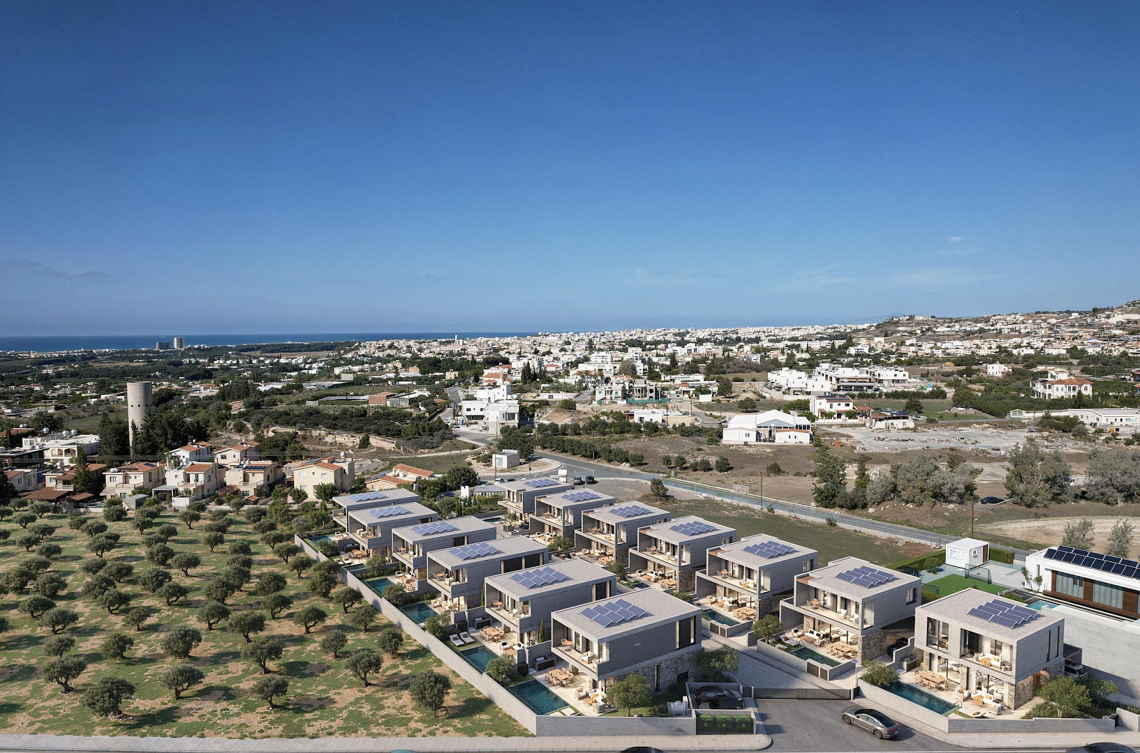 Строящийся комплекс в районе Geroskipou, Пафос. В каждом доме будет бассейн, зона барбекю, система кондиционирования (сплит-система), современная сантехника, крытая парковка. Комплекс будет состоять из 13 домов с приватным въездом.