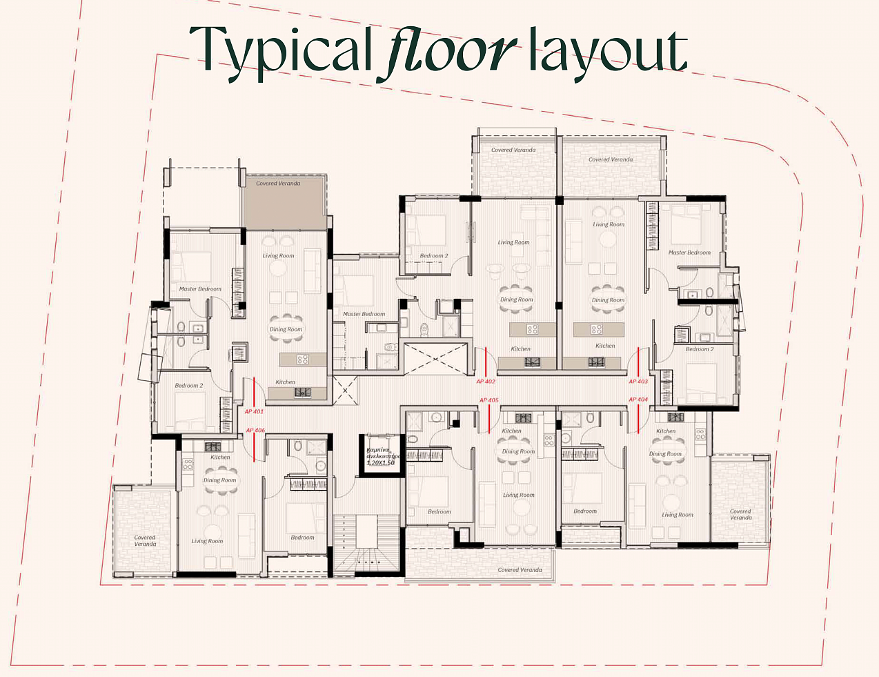 Каждая квартира оснащена системой VRV, отоплением полов и современными инженерными решениями, обеспечивающими энергоэффективность и комфорт. Для удобства жильцов предусмотрены крытая парковка и кладовые помещения.