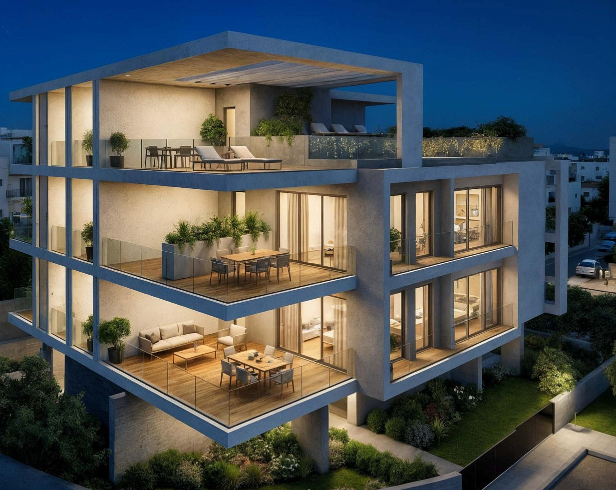 Жилой комплекс, расположенный в оживленном центре города в районе Universal, Paphos. В комплексе 10 уютных апартаментов. Просторные планировки, высокие потолки и балконы позволяют наслаждаться естественным светом и красивыми видами на город. Проектом предусмотрена общая крыша с садом и джакузи - 49 м2, охраняемый вход, индивидуальная кладовая, лобби. Комплекс отличается элегантным дизайном, обеспечивающим комфорт и изысканность для каждого жителя. Квартира является отличным выбором как для постоянного проживания, так и для инвестиции.