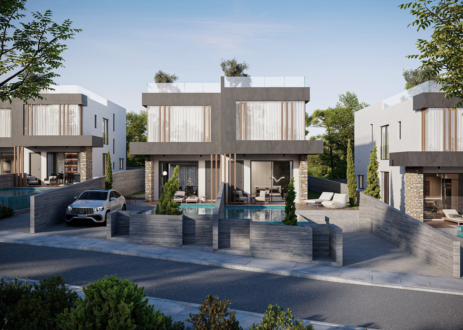 Комплекс включает современные дома и апартаменты с продуманными планировками, просторными гостиными, кухнями открытого типа и светлыми спальнями, создавая комфортное и функциональное пространство для жизни. В строительстве используются высококачественные материалы и современные технологии, обеспечивающие высокий уровень комфорта и энергоэффективности.