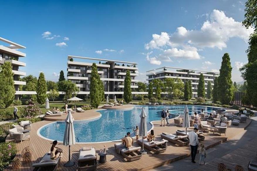 По задумке, он будет состоять из восьми отдельных 4-этажных блоков. Для удобства жильцов в комплексе предусмотрено два больших бассейна для взрослых в форме лагуны с джакузи, детский бассейн, детская площадка, современный тренажерный зал, теннисные корты, спа-зона, мини-маркет и закусочная, просторный паркинг.