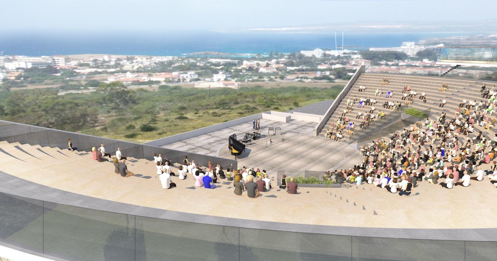 Амфитеатр будет построен на участке с естественным склоном недалеко от центра города и жилого района Коккина, откуда открывается потрясающий панорамный вид на море.