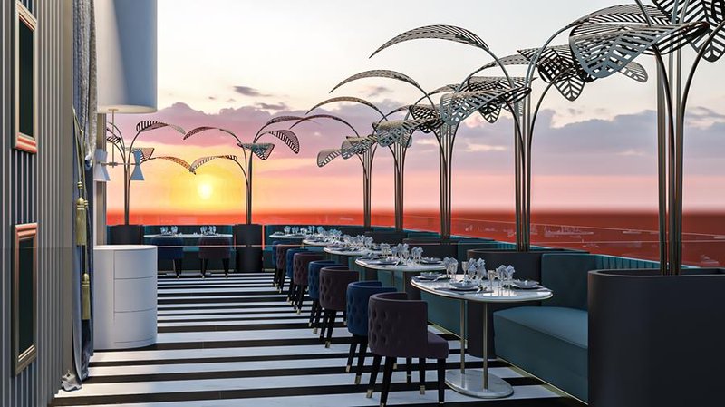 Центр притяжения нового бутик-отеля – многофункциональная зона первого этажа, где расположены ресепшн, зона отдыха и ресторан. Кроме того, гостям будет доступен ресторан и бар на крыше с потрясающим панорамным видом на столицу.