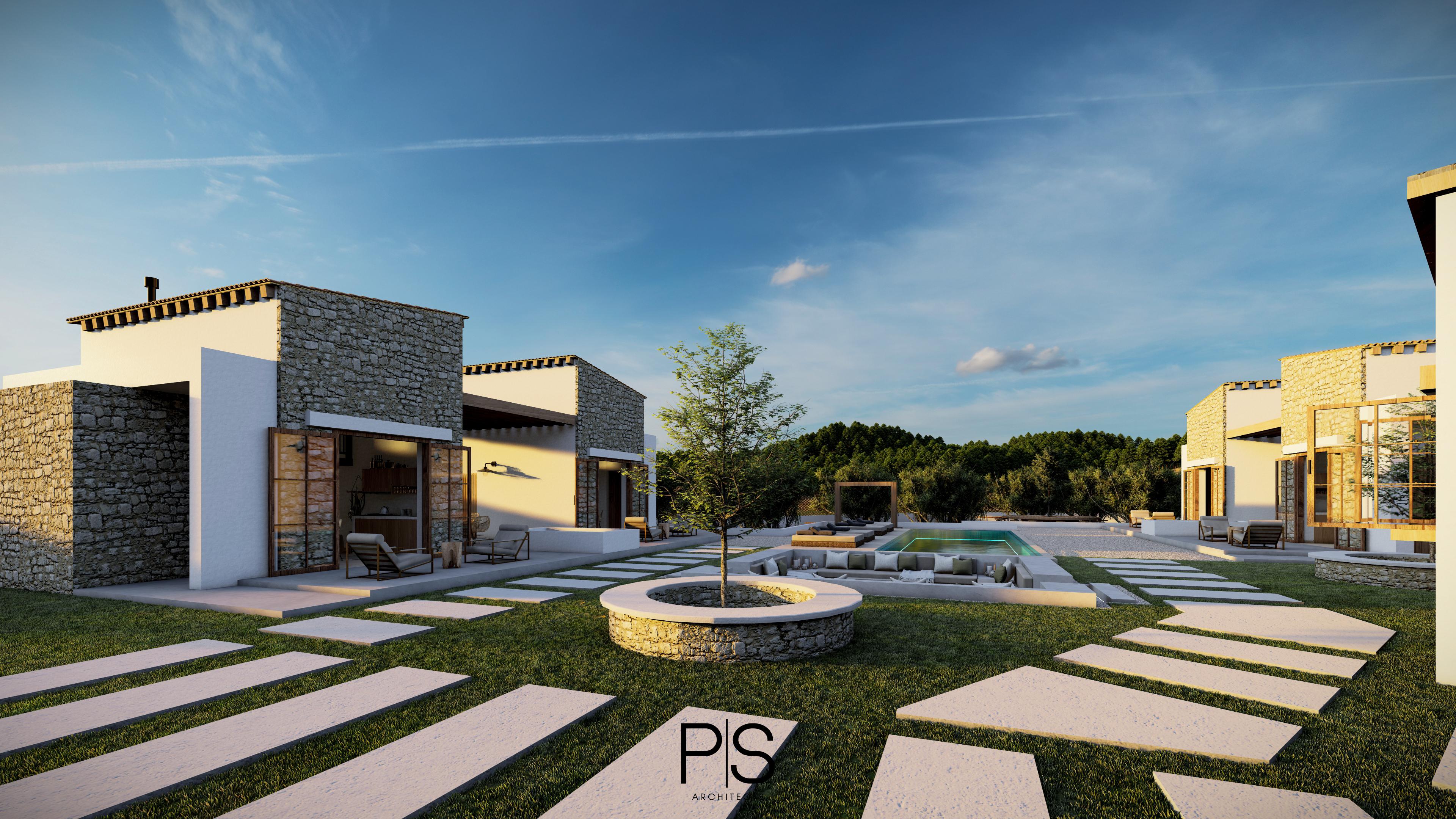 Для удобства постояльцев в Eptagonia Complex предусмотрен бассейн, зона для барбекю и другие места общего пользования. Площадь участка застройки составит 820 м2.