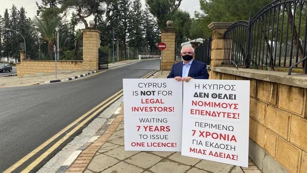 «Кипр не хочет легальных инвесторов» - именно с таким плакатом в руке рано утром, в понедельник, 9 ноября, российский бизнесмен Николай Потапенко вышел на одиночный пикет к зданию Президентского Дворца.