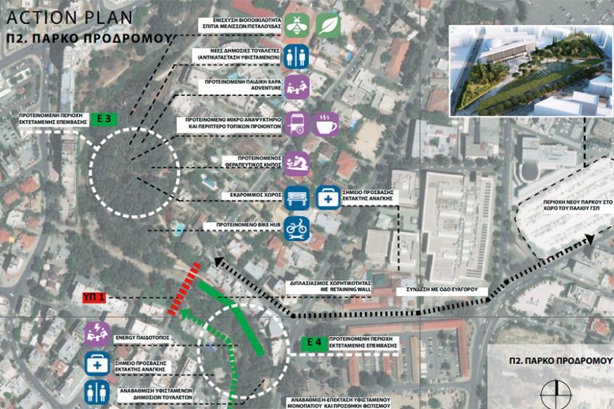 Среди наиболее важных этапов проекта — создание центра антикризисного управления линейного парка Педиэос, который будет работать в здании SPE Strovolos. Связь с центром управления кризисными ситуациями будет осуществляться круглосуточно. Люди смогут обращаться в него по вопросам преступного поведения, травм, наводнения или пожара. Усилия по отслеживанию кризисных ситуации будут подкреплены работой камер, которые будут размещены вдоль парка, а также бесплатной сетью Wi-Fi. По предложению технократической группы поддержки проекта в парке установят волоконно-оптическую сеть протяженностью 10,8 км.