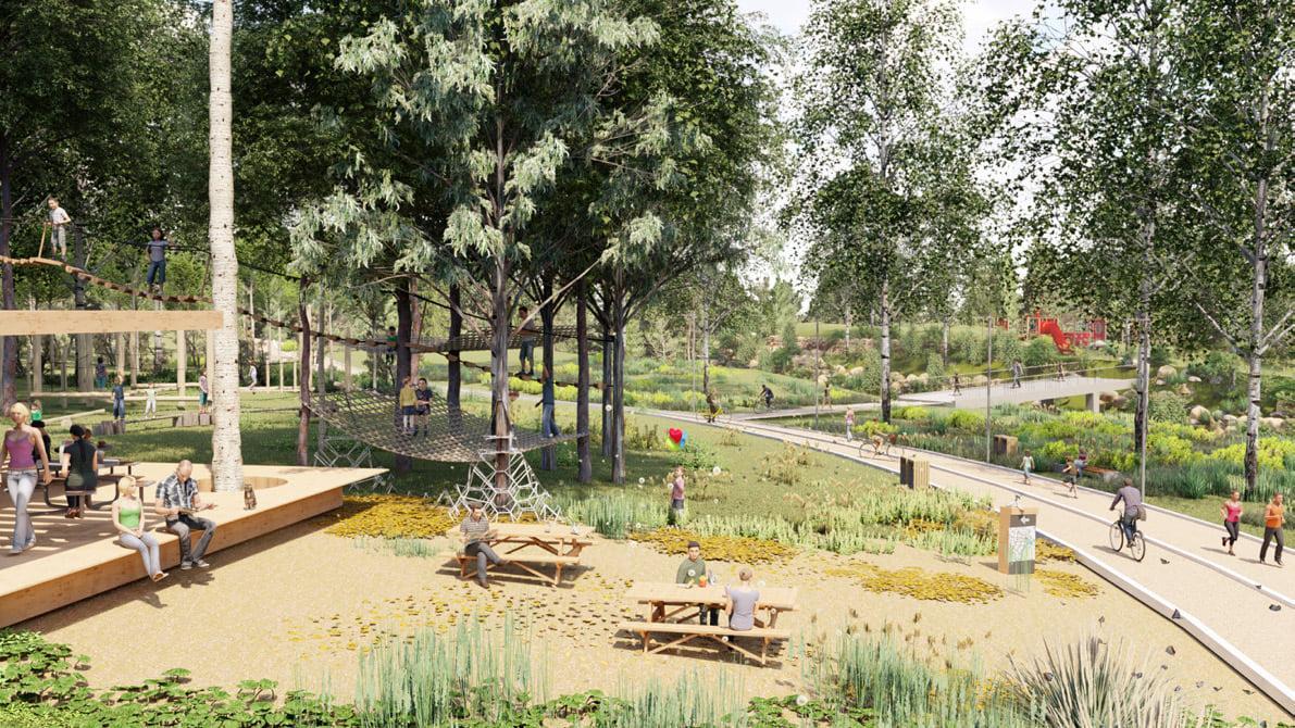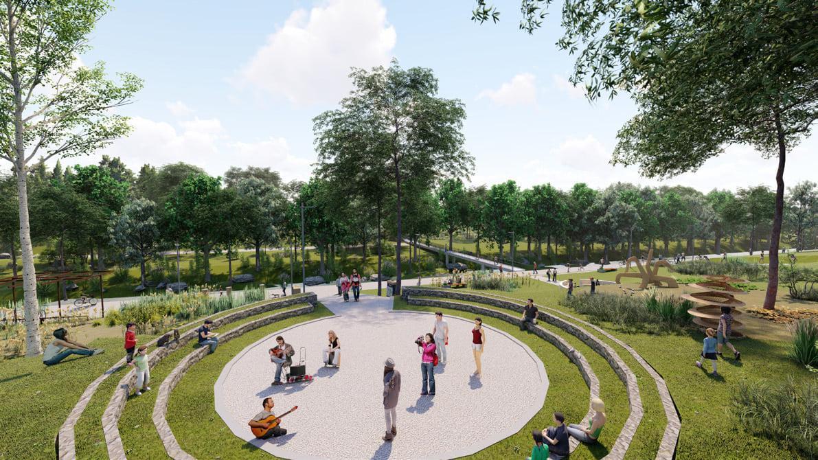 Кроме того, на территории парка появится экологический центр и музей, киоски, в которых будут продавать местные продукты. Здесь же установят зарядные станции для электромобилей. А все паркинги на территории общественного пространства сделают экологически чистыми, без использования асфальта, при помощи специальных водопроницаемых материалов.