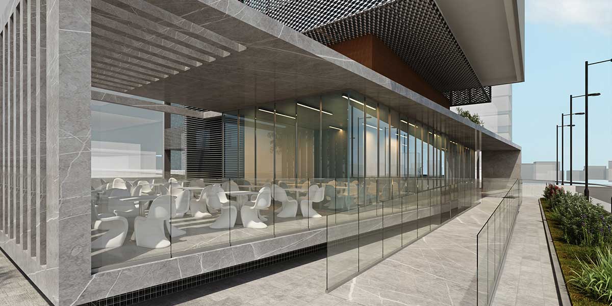 Проект также предусматривает ресепшн, тренажерный зал и кафетерий на первом этаже. Для удобства сотрудников рядом с высоткой оборудуют просторный паркинг для машин на 35 мест, а также парковочные места для велосипедов и красивый сад.