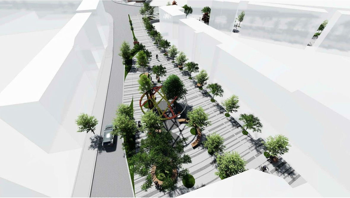 В соответствии с этим проектом, в районе расширят тротуары, установят единое городское освещение с мачтовыми светильниками, установят скамейки и клумбы, а также создадут новые парковочные места, даже для электромобилей. Кроме того, будет проведена модернизация водосточной системы, заглубление инженерных сетей и установка водного элемента с размещением современной городской техники, в том числе на участке, разграничивающем начало улицы Эрму и конец улицы Клеанти Калогера.