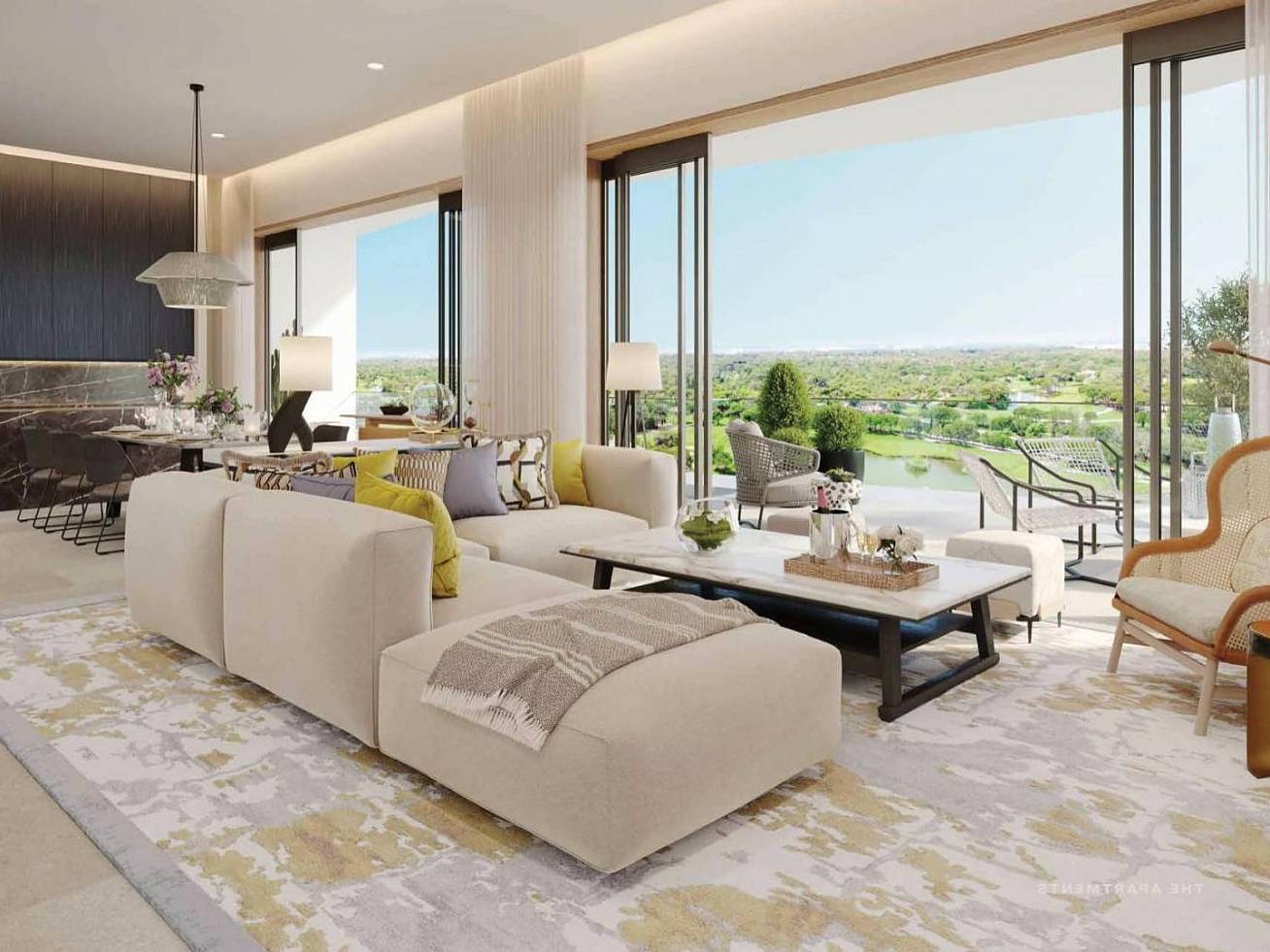 В центре Limassol Greens, рядом с клубной деревней и клаб-хаусом, также предусмотрен комплекс Robin Apartments. Комплекс апартаментов разделен на две секции с двумя отдельными вестибюлями с отдельными лифтами. Потенциальные покупатели могут приобрести здесь 2- и 3-спальные квартиры, одним из главных преимуществ которых является потрясающий панорамный вид на поле для гольфа, Соленое озеро, лес и море. Для жителей апартаментов предусмотрены бассейны, лаундж-зоны и все возможности для пикника и барбекю.