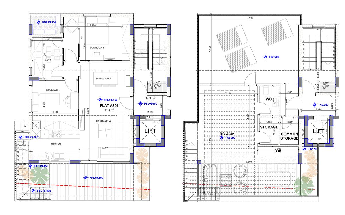 - two 3-bedroom penthouses with a private garden on the 4th and 5th floors.