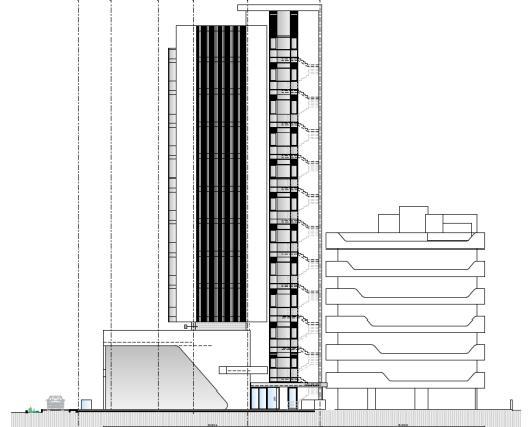 Высота зданий составит 41,60 м. Каждый корпус будет иметь собственный подземный паркинг.