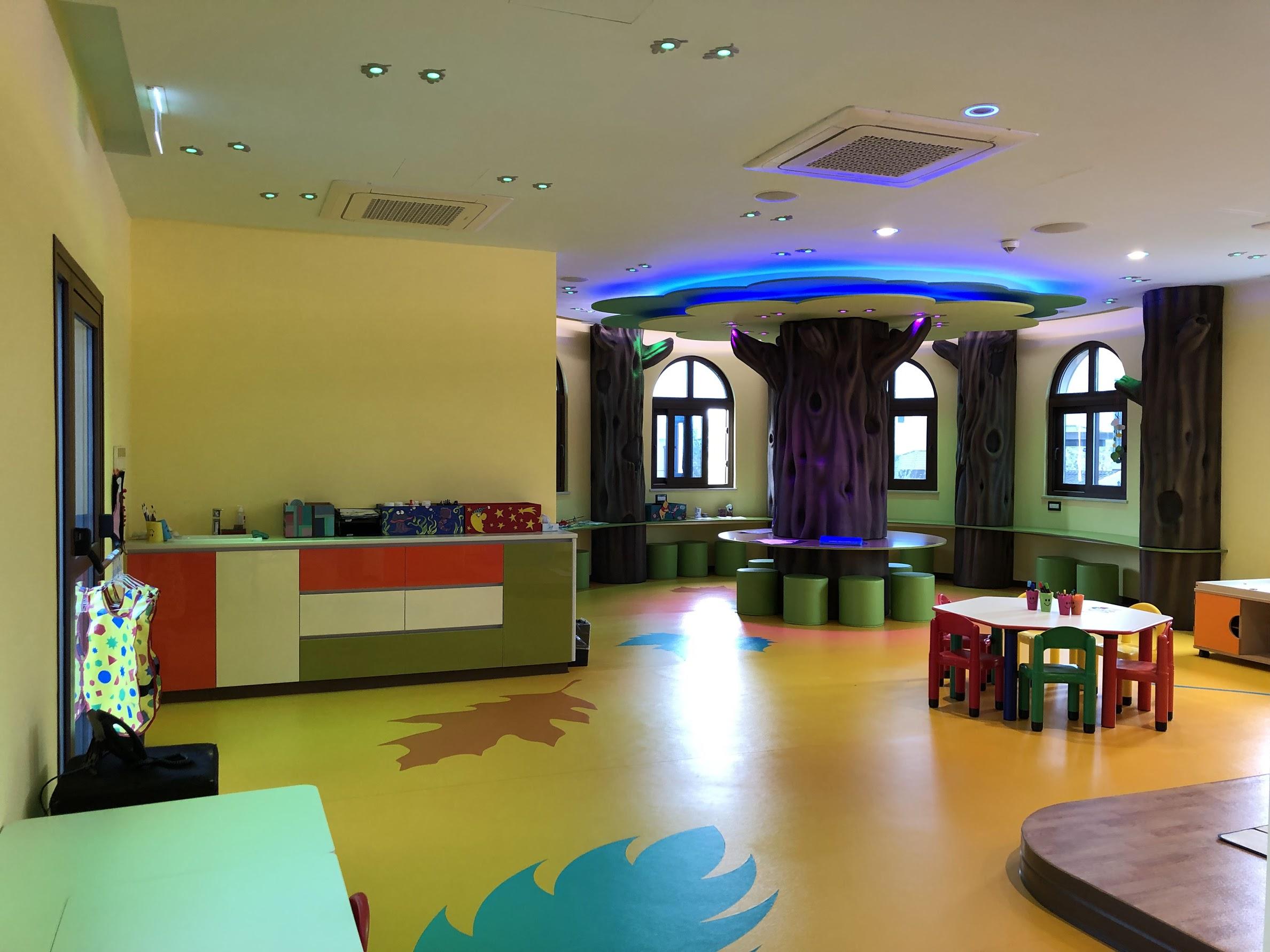 Самый большой интерес, несомненно, представляет двухэтажный замок площадью 400 м2. Эта игровая зона направлена в первую очередь на развитие детей — здесь с ними лепят, рисуют, конструируют, делают аппликации. Первый этаж здания полностью оборудован для детей в возрасте до 3-х лет: для них отведено 2 просторные комнаты с новыми современными игрушками. Второй этаж — зона отдыха для детей от 4-х лет и старше. Оригинальный дизайн, яркие цвета, удобные игровые пространства создают невообразимую сказочную атмосферу.