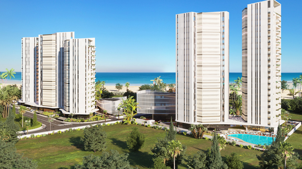 В полном объеме комплекс будет включать шесть жилых башен с общественными зонами на первых и подземных этажах. Здесь разместятся тренажерные залы, складские помещения, технические зоны, парковки и пространства для отдыха жителей. Дополнительно запланированы два здания общественного назначения с ресторанами, магазинами, офисами, спа-зонами, бассейнами, зелеными насаждениями и даже площадкой для падела. Такой формат соответствует современным тенденциям развития прибрежной недвижимости в Средиземноморье, где спрос на жилье у моря ежегодно растет более, чем на 10%.