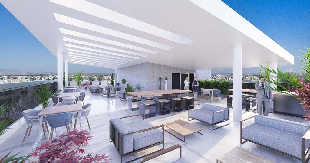 Кроме того, на крыше имеется лаунж-зона, которая может использоваться для корпоративных развлекательных мероприятий. Из всех офисов открывается потрясающий панорамный вид на Никосию.